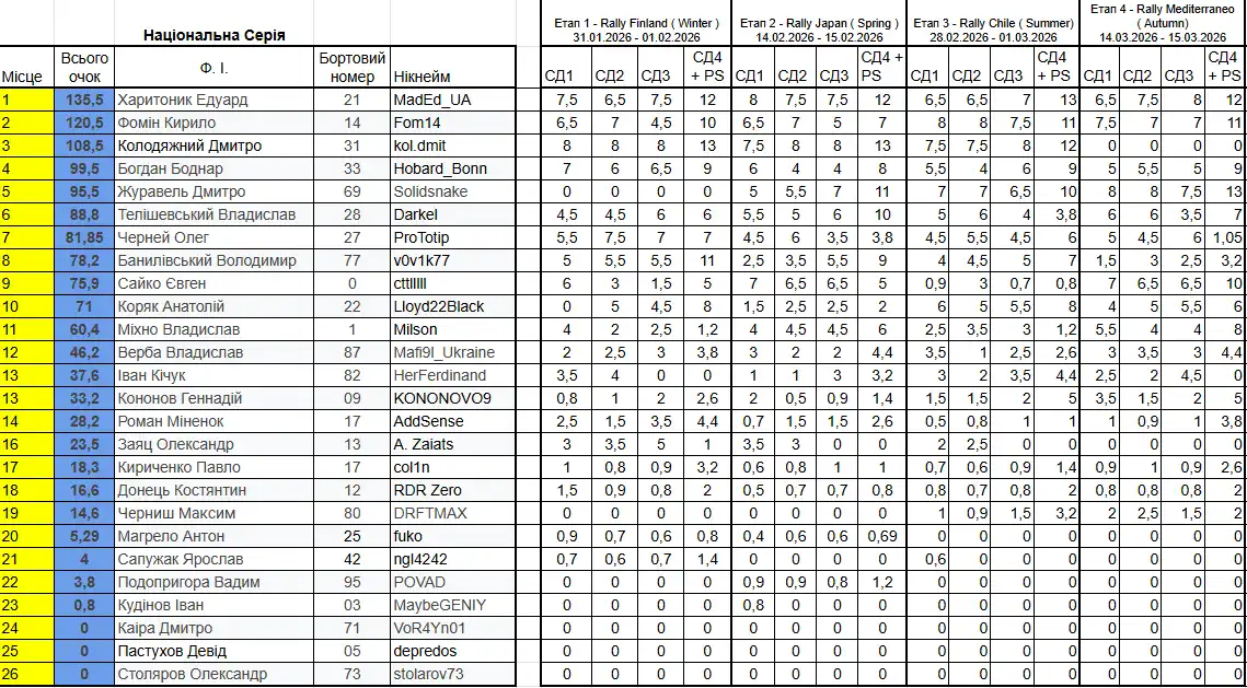 14 березня 2026 року Комісія Цифрового Автоспорту Автомобільної Федерації України спільно з UARTA провели ЧЕТВЕРТИЙ етап офіційного Чемпіонату України та в Національній серії змагань із цифрового ралі.