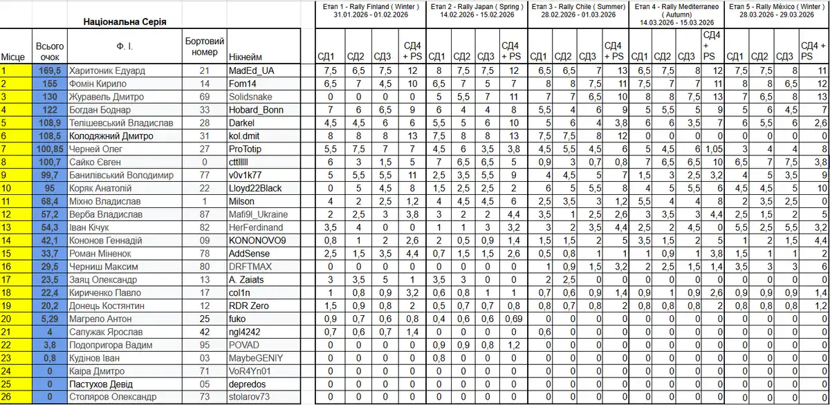 28 березня 2026 року відбувся фінальний, п’ятий етап Національної серії із цифрового ралі — TELEMART Final Race, який став яскравою кульмінацією напруженого сезону та визначив найсильніших пілотів країни.