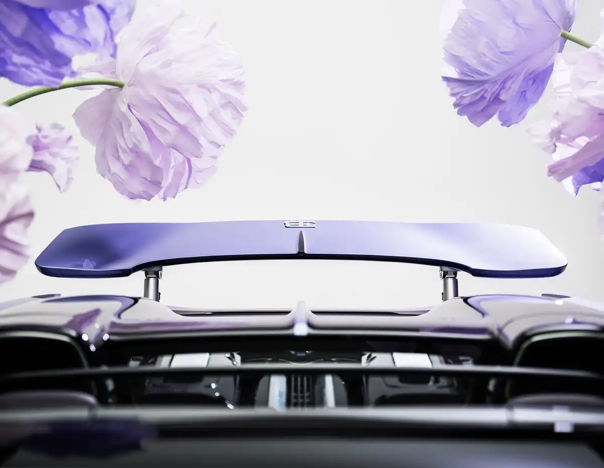 Зовнішність “Caroline” розкривається поступово — через відтінки, світло й деталі. Основний колір кузова, спеціально створений відтінок Lavender, став результатом тривалих експериментів із десятками варіацій.