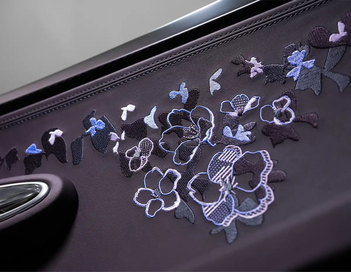 На дверях орнаменти виглядають більш динамічно — пелюстки ніби рухаються, підхоплені вітром. Це тонкий натяк на швидкість і рух, що лежать в основі ДНК Bugatti.