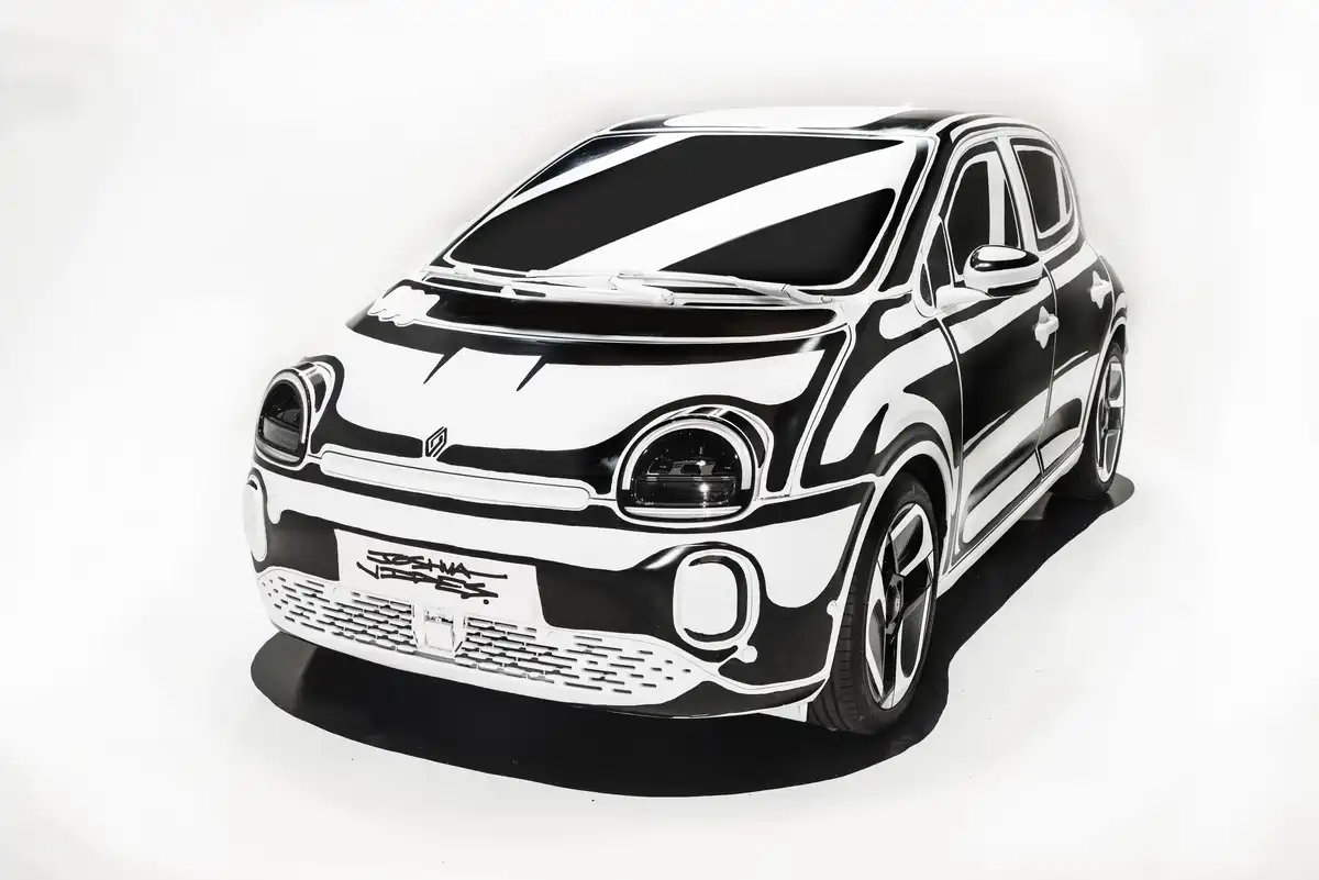 Саме цей підхід був застосований і до Twingo. Кузов автомобіля отримав характерні контури та графічні елементи, завдяки яким машина виглядає так, ніби щойно зійшла зі сторінок скетчбука. Враження підсилюється тим, що знайомий об’ємний об’єкт раптом починає сприйматися як ілюзія.