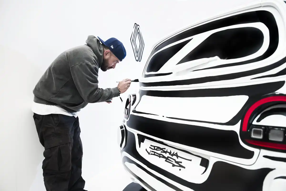 Французький бренд Renault надав художнику Joshua Vides повну творчу свободу — і електричний Renault Twingo E-Tech electric перетворився на унікальний витвір сучасного мистецтва просто на очах у публіки.