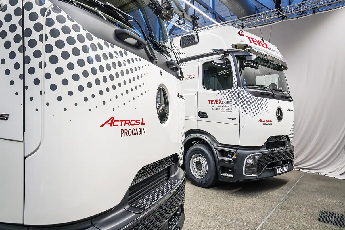 На заводі Mercedes-Benz у Верт-на-Рейні відбулася урочиста передача перших 14 вантажівок Actros L з новою кабіною ProCabin компанії Tevex Logistics GmbH.