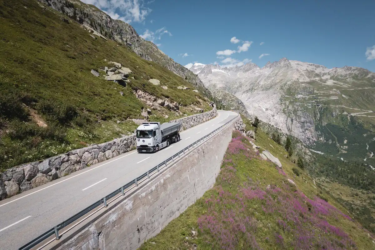 Після успішних зимових тестів Daimler Truck повернувся до Швейцарських Альп, аби випробувати наступне покоління водневих вантажівок Mercedes-Benz GenH2 у літніх умовах.
