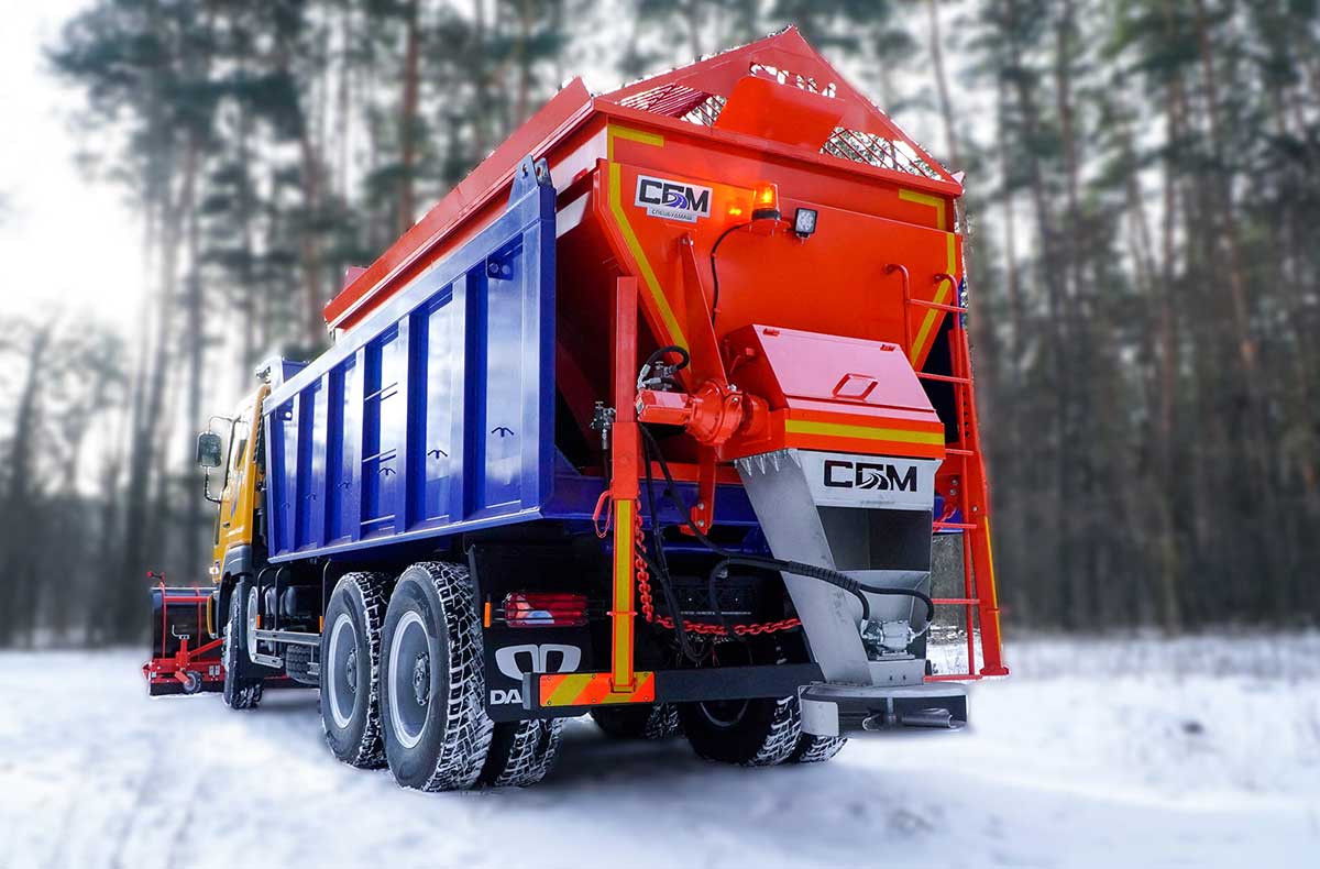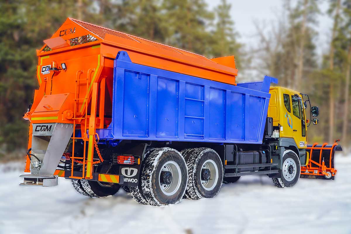 Завод комунальної та дорожньої техніки «Спецбудмаш» виготовив дорожньо-комбіновані машини з піскорозкидальним обладнанням та снігоприбиральним відвалом на базі самоскидів DAEWOO CL7D7 6X4 для замовника з Івано-Франківської області.
