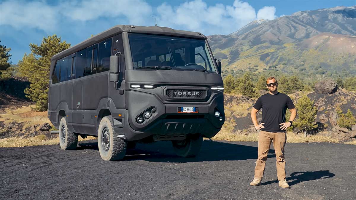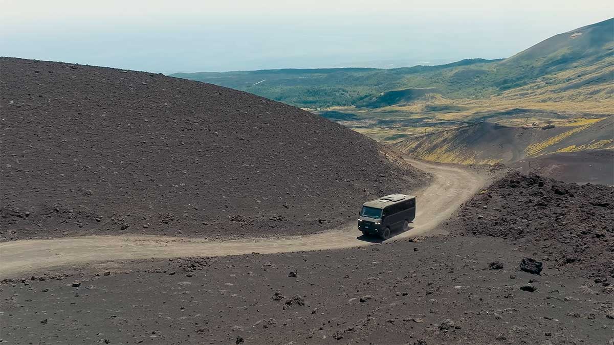У 9-хвилинному відео, ведучий Том Форд на автобусі Praetorian підіймається на вершину діючого вулкану Етна, що в Італії. Як зазначають в сюжеті, Torsus щоденно працює на цій локації, доставляючи туристів.