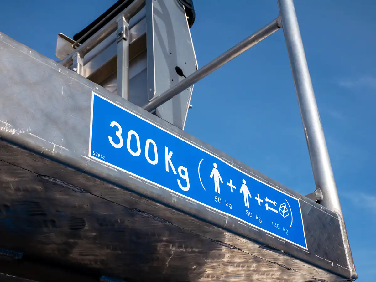 Вантажопідйомність люльки становить 300 кг, що дозволяє підіймати робітників разом із необхідним інструментом та матеріалами.