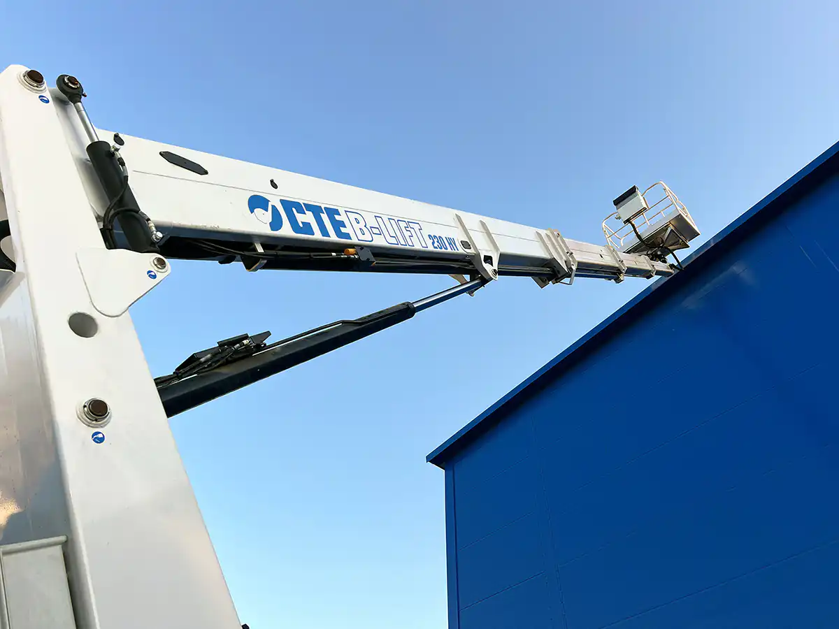 Обертання стріли можливе на 360 градусів, що значно підвищує маневреність і функціональність автовишки.