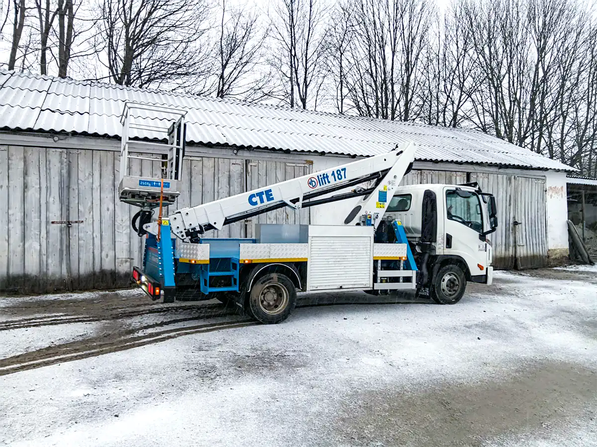 Саме для таких завдань призначена автовишка CTE B-LIFT 187, яку змонтували на шасі DAYUN CGC1060 на потужностях Кременчуцького заводу комунальної техніки АЛЬФАТЕКС. Машина здатна піднімати операторів разом із необхідним інструментом і матеріалами на висоту до 18 метрів, що дозволяє виконувати широкий спектр робіт — від комунального господарства до будівництва.