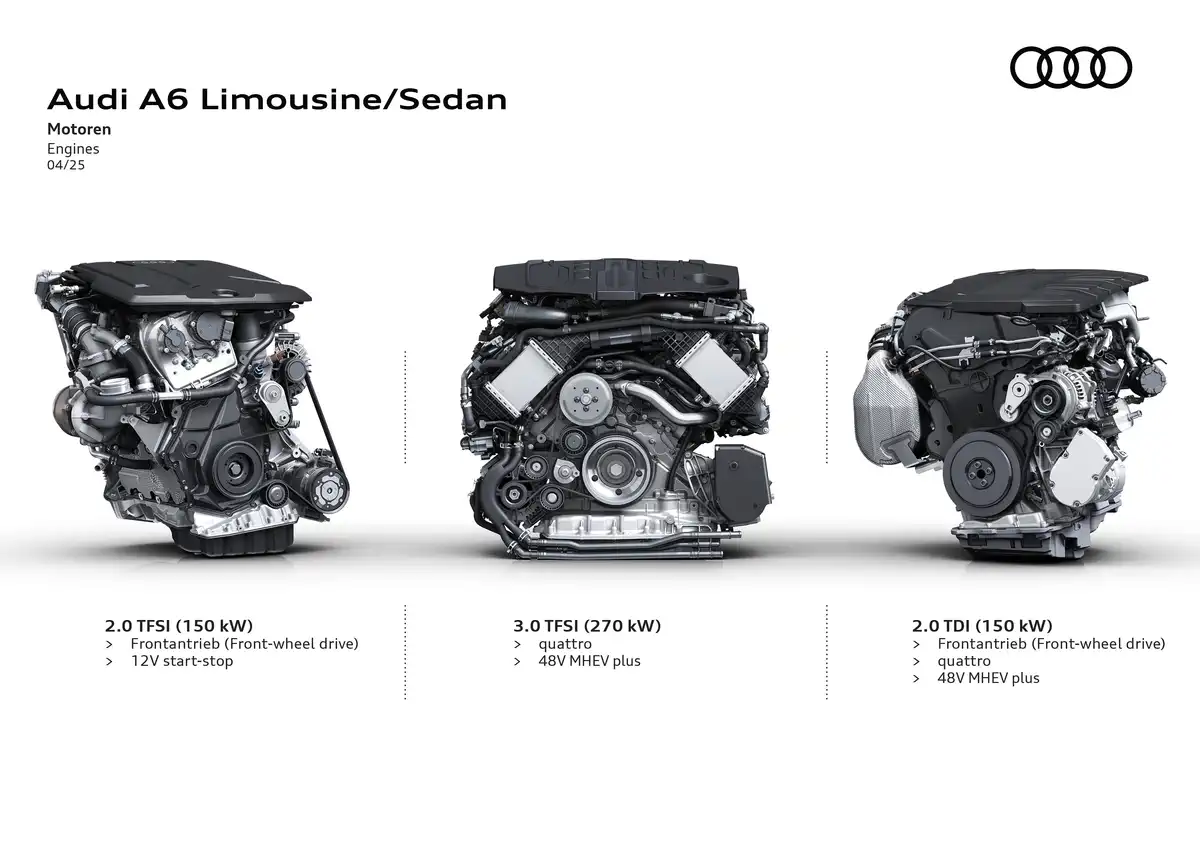 Нову Audi A6 Sedan збиратимуть на заводі в Неккарзульмі (Німеччина). Старт замовлень запланований на середину квітня 2025 року. Перші постачання клієнтам очікуються влітку того ж року.